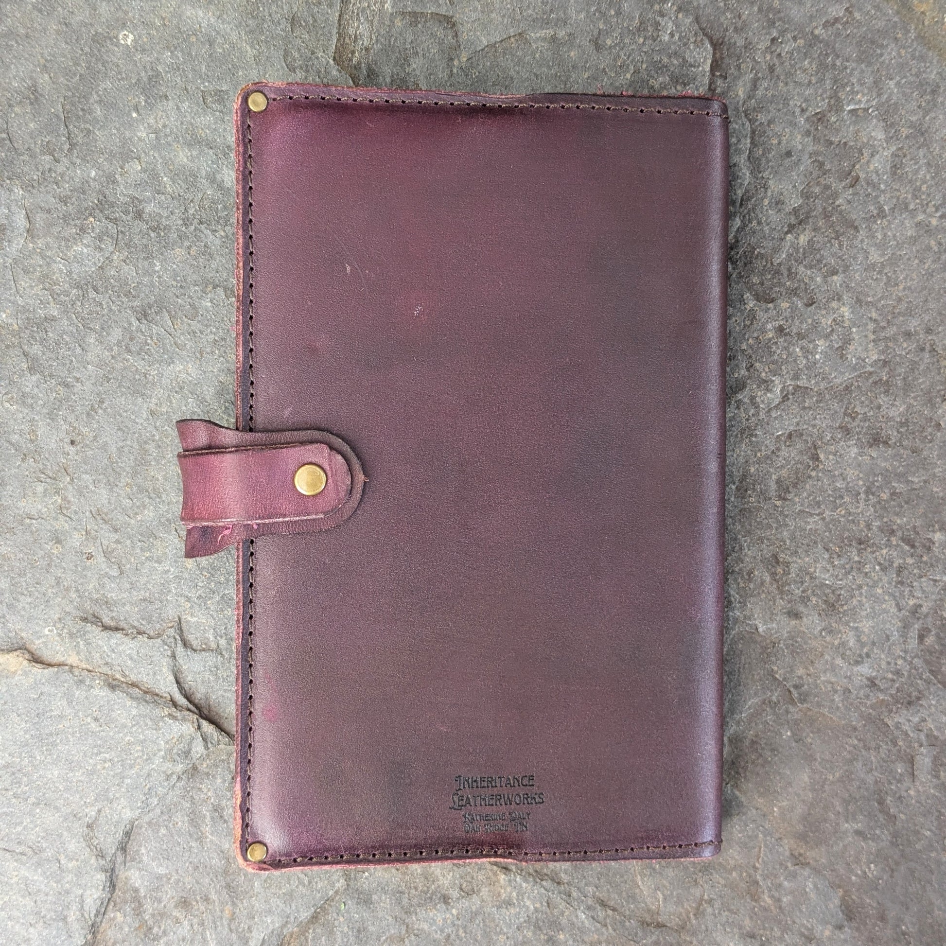 This handmade leather journal is a blend of art, history, and lasting craftsmanship, created by a single artisan in Oak Ridge, Tennessee. The cover is made from hand-dyed leather, laser engraved with imagery sourced from an antique magazine and brought back to life in a beautifully reimagined format. It’s carefully stitched, reinforced with solid brass rivets, and secured with a snap closure for durability and elegance.