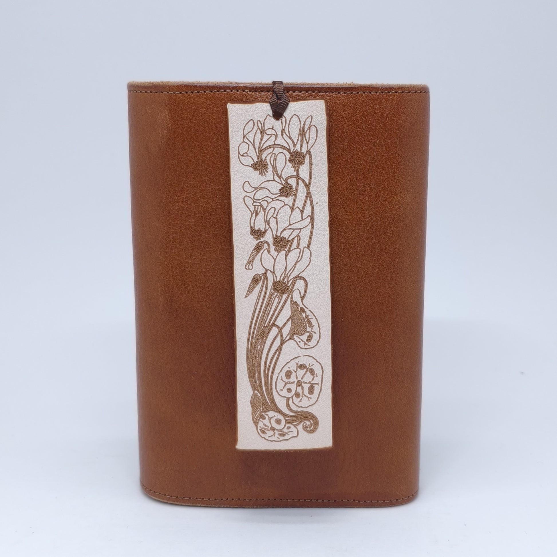 Crafted by a single artisan in Oak Ridge, Tennessee, this handmade leather bookmark combines vintage charm with meticulous craftsmanship. Made from high quality vegetable tanned leather, it is laser engraved with artwork sourced from antique books, bringing historic imagery back to life in a thoughtful, everyday form.