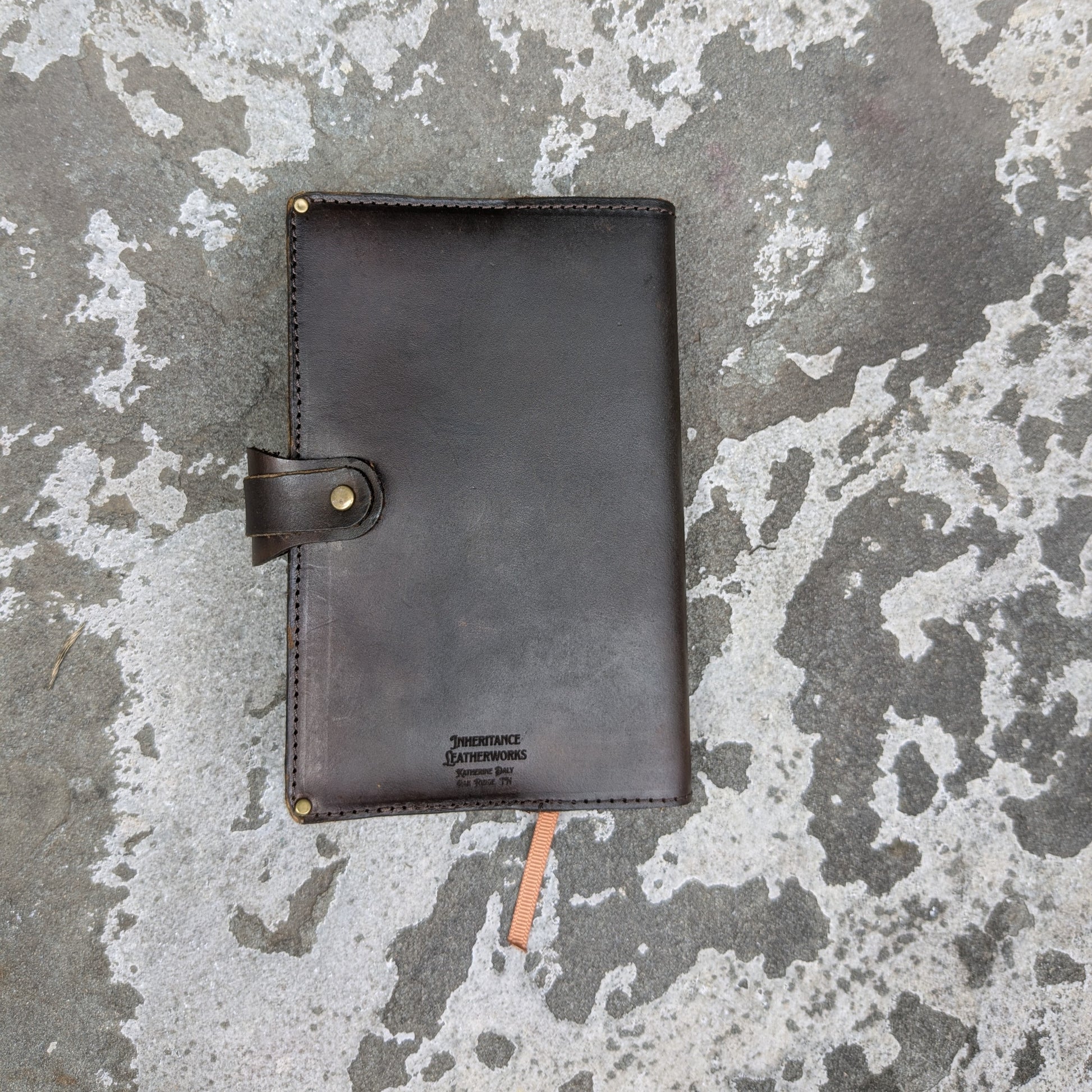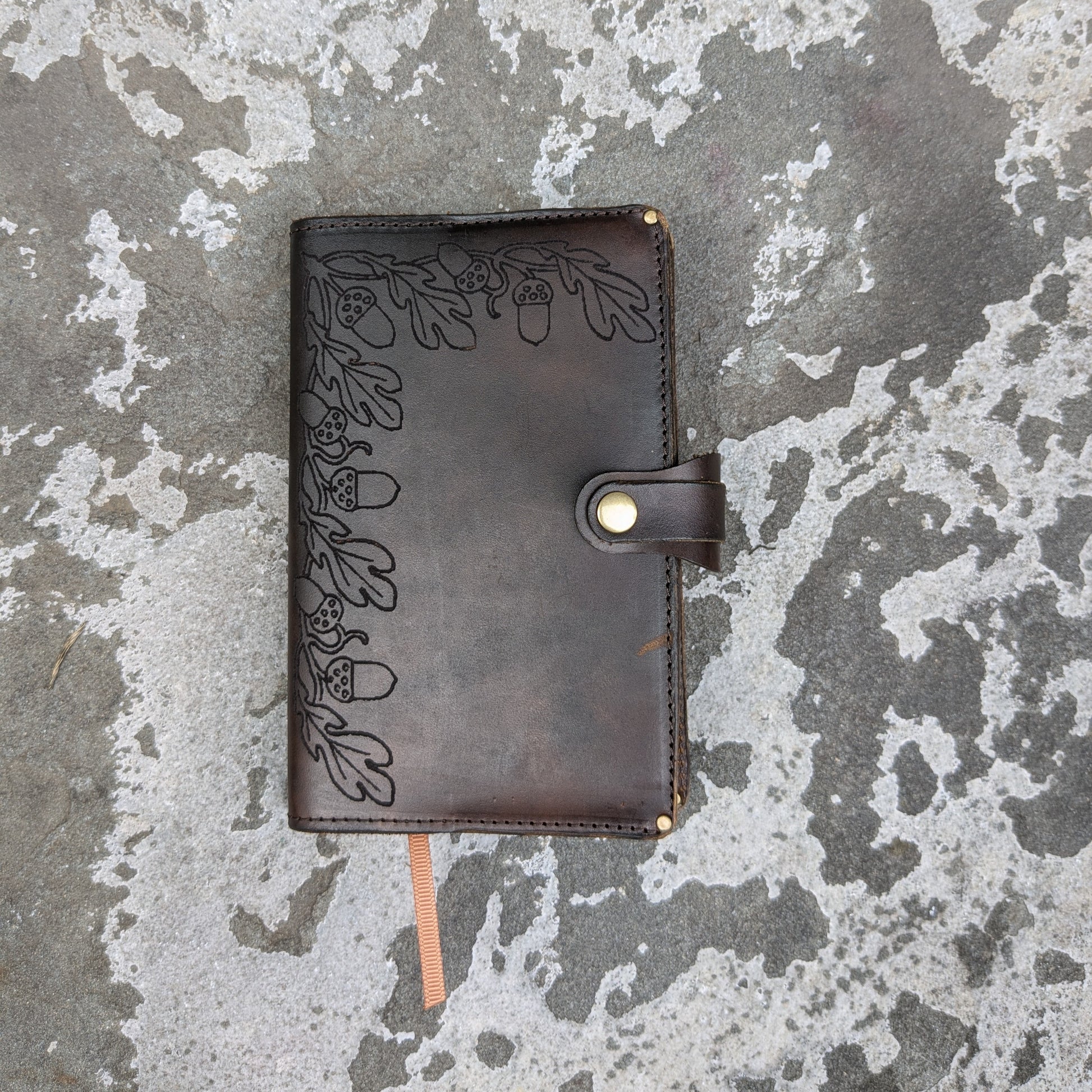 This handmade leather journal is a blend of art, history, and lasting craftsmanship, created by a single artisan in Oak Ridge, Tennessee. The cover is made from hand-dyed leather, laser engraved with imagery sourced from an antique book, and brought back to life in a beautifully reimagined format. It’s carefully stitched, reinforced with solid brass rivets, and secured with a snap closure for durability and elegance.