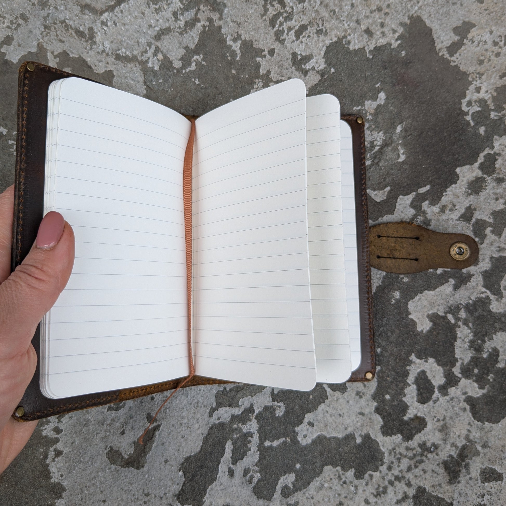 Inside, you’ll find 160 lined pages with a lay-flat sewn binding for comfortable writing on both sides, plus a ribbon bookmark to keep your place. The unique closure design features a pen loop, so your favorite writing tool is always close at hand. Designed to be both functional and long-lasting, the leather cover is refillable with standard A6 size notebooks, making this journal a trusted companion for years to come.