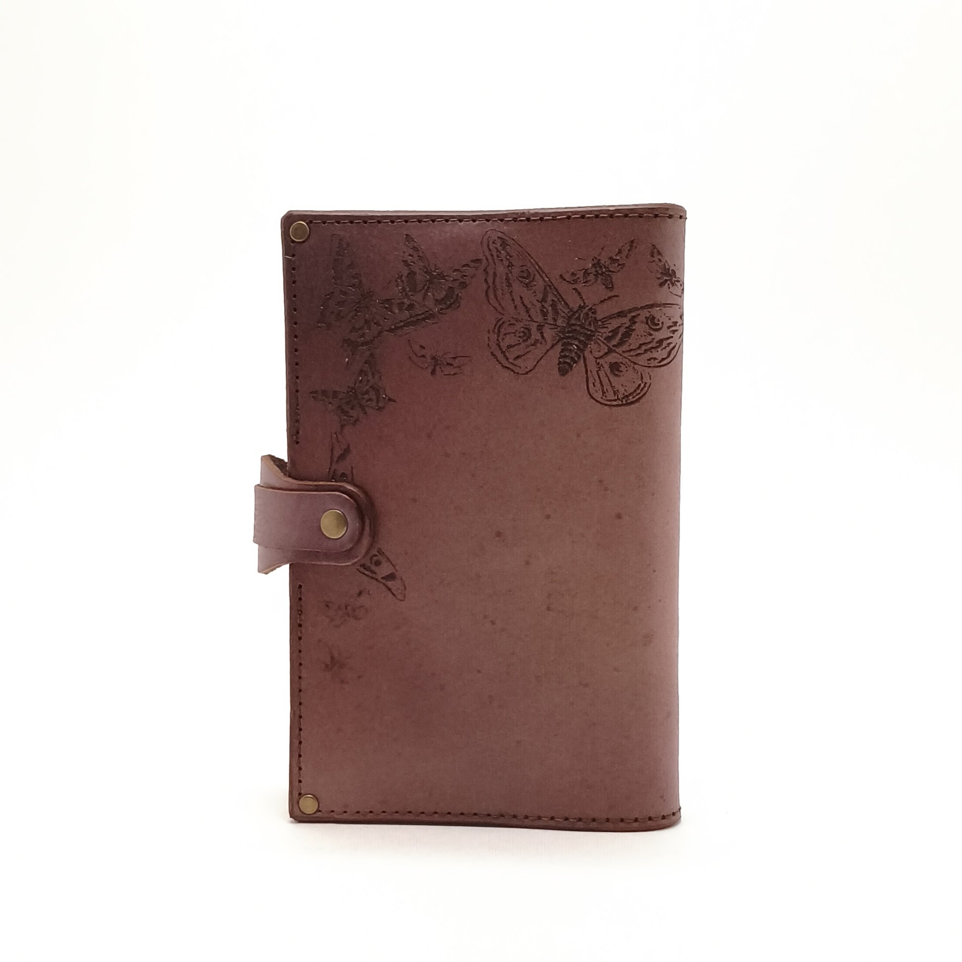 This handmade leather journal is a blend of art, history, and lasting craftsmanship, created by a single artisan in Oak Ridge, Tennessee. The cover is made from hand-dyed leather and laser engraved with an illustration sourced from an antique book. It’s reinforced with solid brass rivets and secured with a snap closure for durability and elegance.