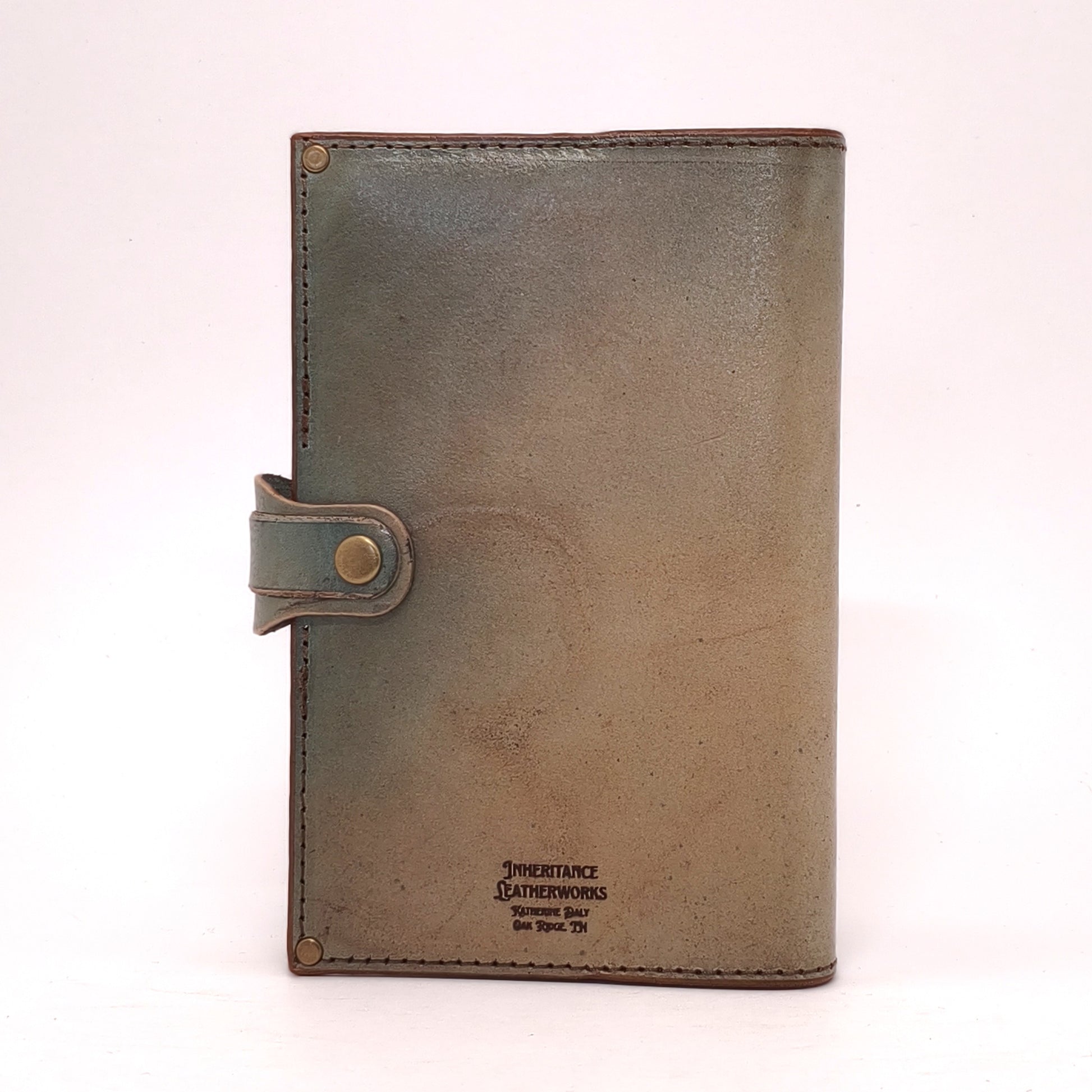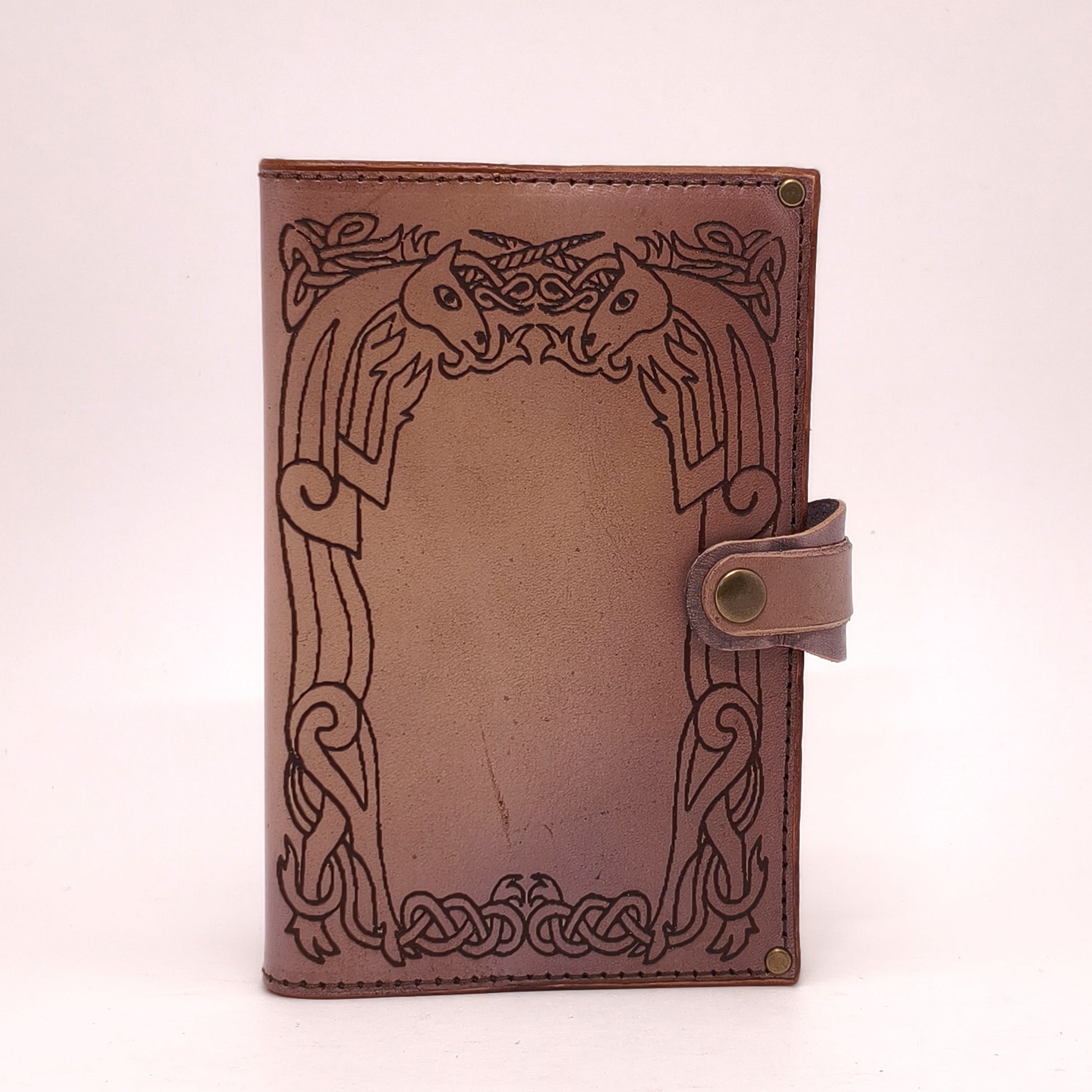 This handmade leather journal is a blend of art, history, and lasting craftsmanship, created by a single artisan in Oak Ridge, Tennessee. The cover is made from hand-dyed leather, laser engraved with imagery sourced from an antique book, and brought back to life in a beautifully reimagined format. It’s reinforced with solid brass rivets and secured with a snap closure for durability and elegance.