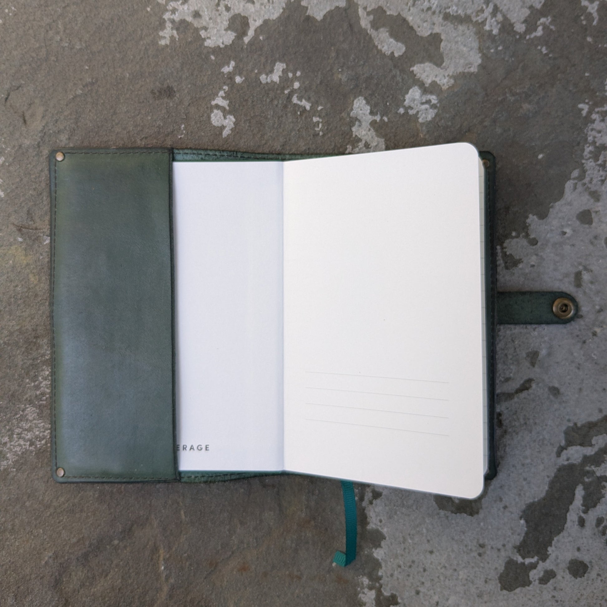Inside, you’ll find 160 lined pages with a lay-flat sewn binding for comfortable writing on both sides, plus a ribbon bookmark to keep your place. Designed to be both functional and long-lasting, the leather cover is refillable with standard A6 size notebooks, making this journal a trusted companion for years to come.