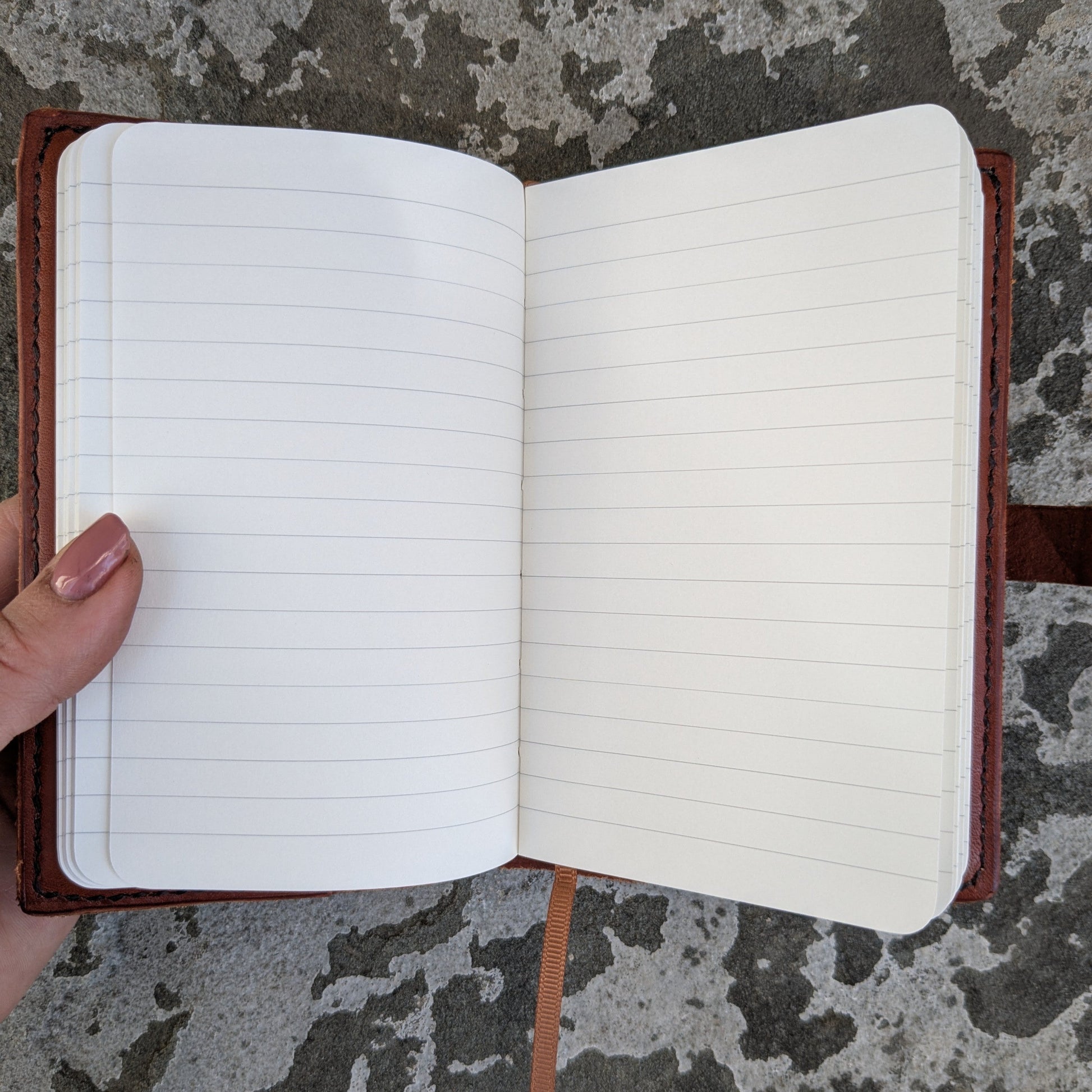 Inside, you’ll find 160 lined pages with a lay-flat sewn binding for comfortable writing on both sides, plus a ribbon bookmark to keep your place. Designed to be both functional and long-lasting, the leather cover is refillable with standard A6 size notebooks, making this journal a trusted companion for years to come.