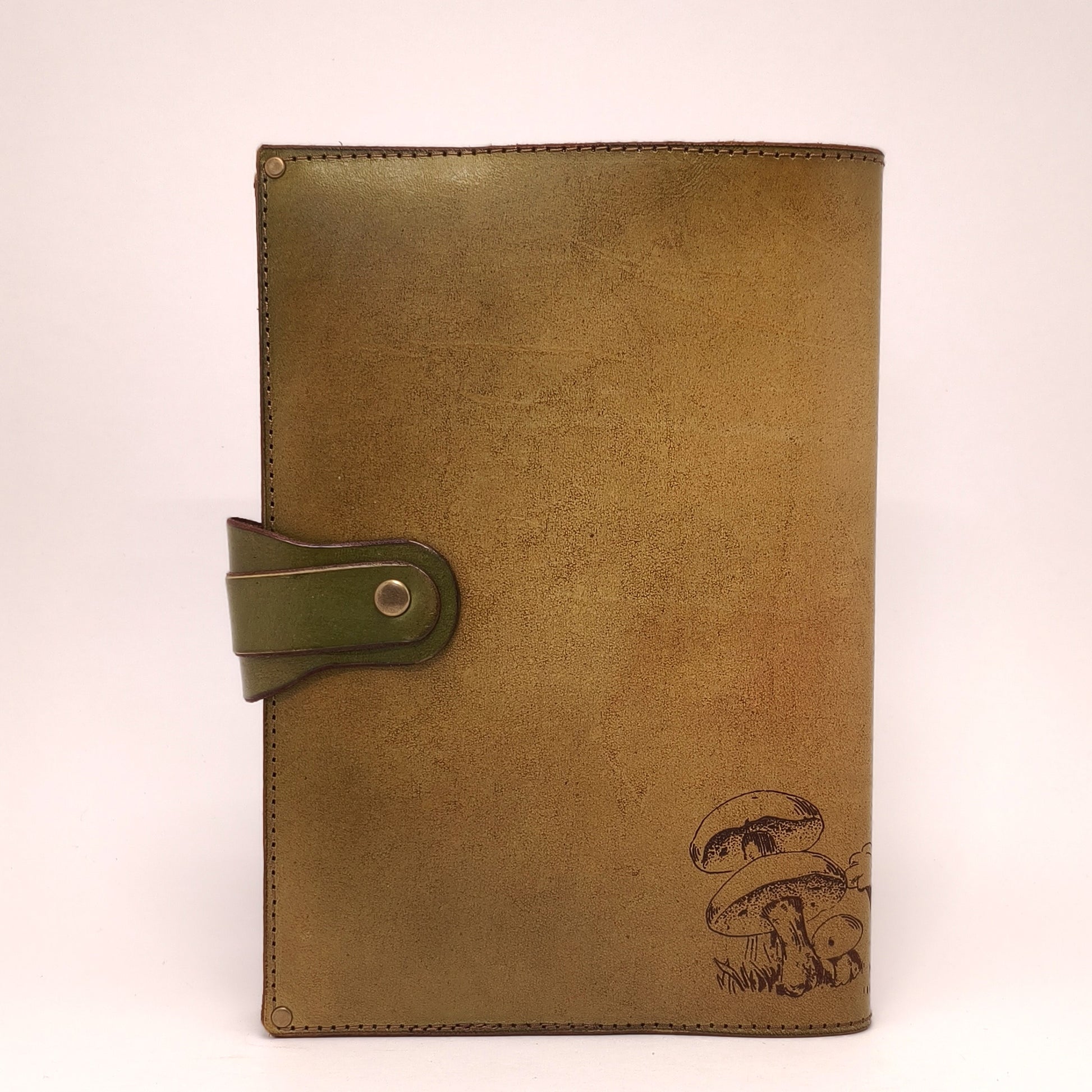 This handmade leather journal is a blend of art, history, and lasting craftsmanship, created by a single artisan in Oak Ridge, Tennessee. The cover is made from hand-dyed leather and laser engraved with an illustration sourced from an antique book. It’s reinforced with solid brass rivets and secured with a snap closure for durability and elegance.