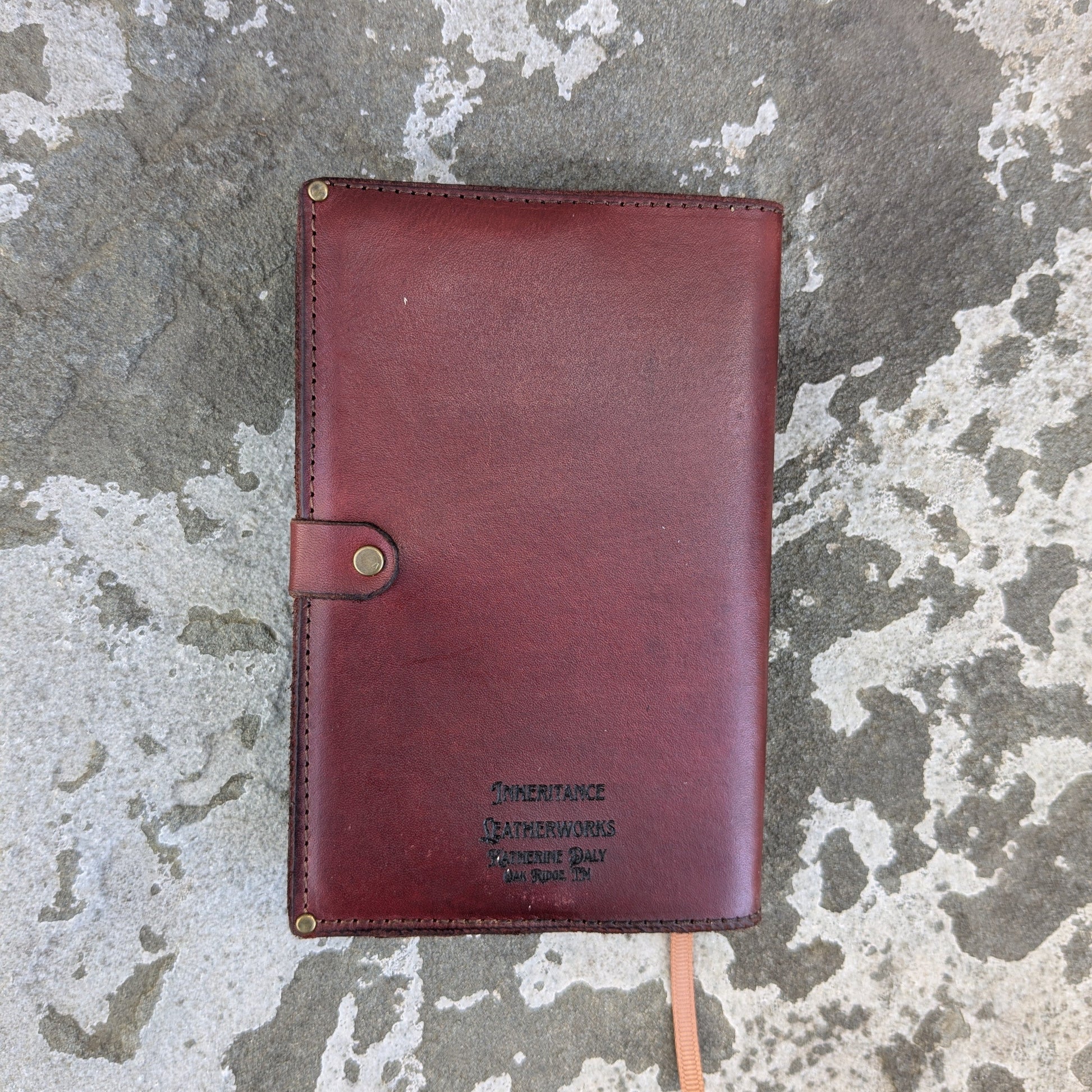 This handmade leather journal is a blend of art, history, and lasting craftsmanship, created by a single artisan in Oak Ridge, Tennessee. The cover is made from hand-dyed leather, laser engraved with imagery sourced from an antique book, and brought back to life in a beautifully reimagined format. It’s carefully stitched, reinforced with solid brass rivets, and secured with a snap closure for durability and elegance.
