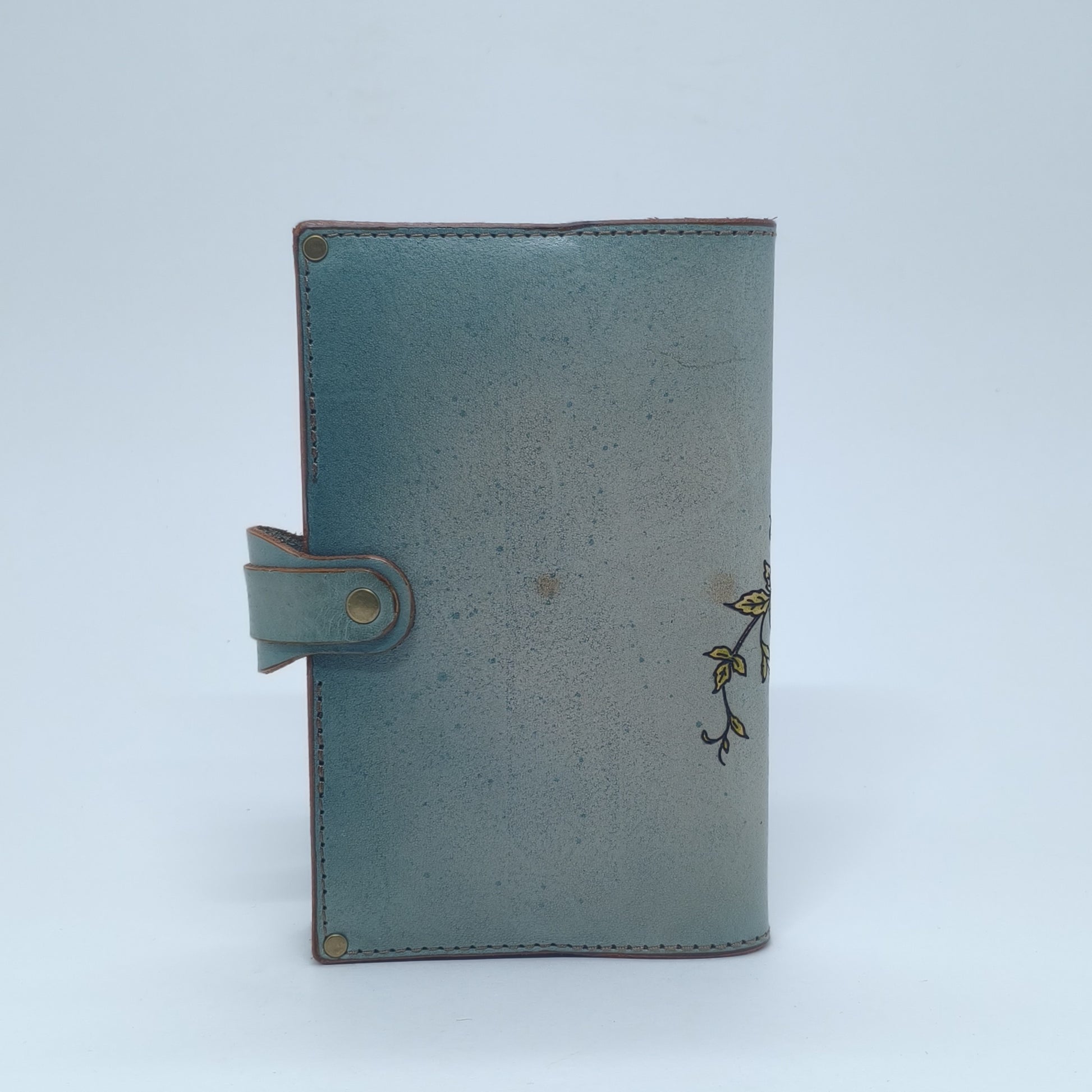 This handmade leather journal is a blend of art, history, and lasting craftsmanship, created by a single artisan in Oak Ridge, Tennessee. The cover is made from hand-dyed leather and laser engraved with imagery sourced from an antique embroidery book. The illustration has been carefully colored with layer upon layer of dye, bringing the berries and leaves to life. It’s reinforced with solid brass rivets and secured with a snap closure for durability and elegance.